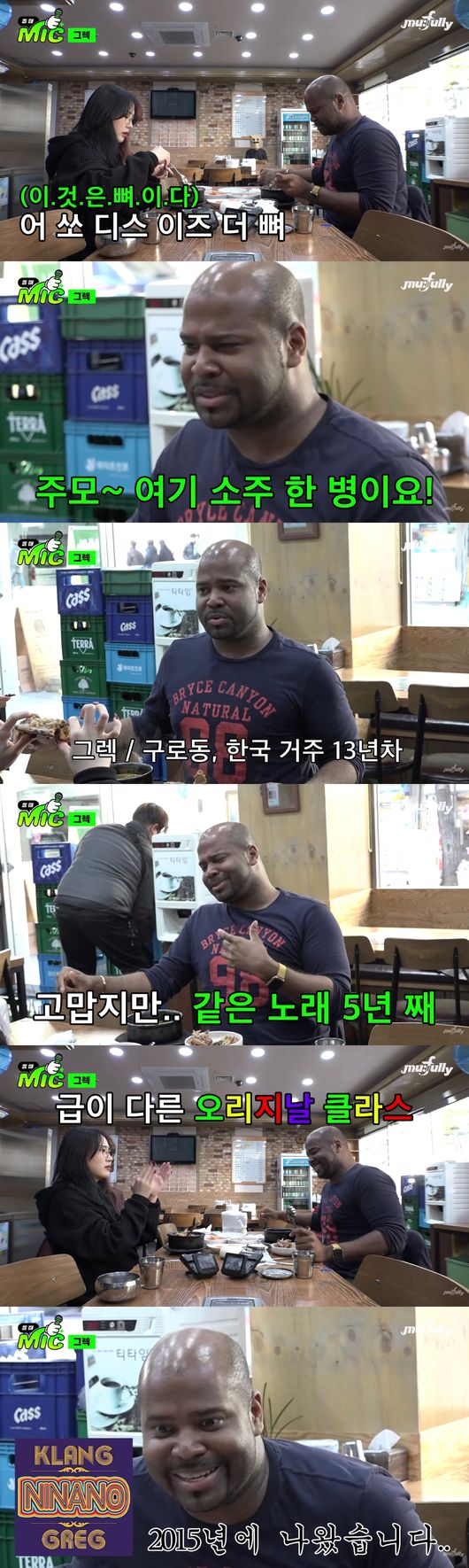 박지민이 도착한 곳은 한 감자탕집이었다. 그곳에는 '슈퍼스타K'에서 김범수의 '보고싶다' 커버로 화제를 모았던 그렉이 있었다. 이미 친분이 있는 박지민과 그렉은 반갑게 인사를 나눴다.