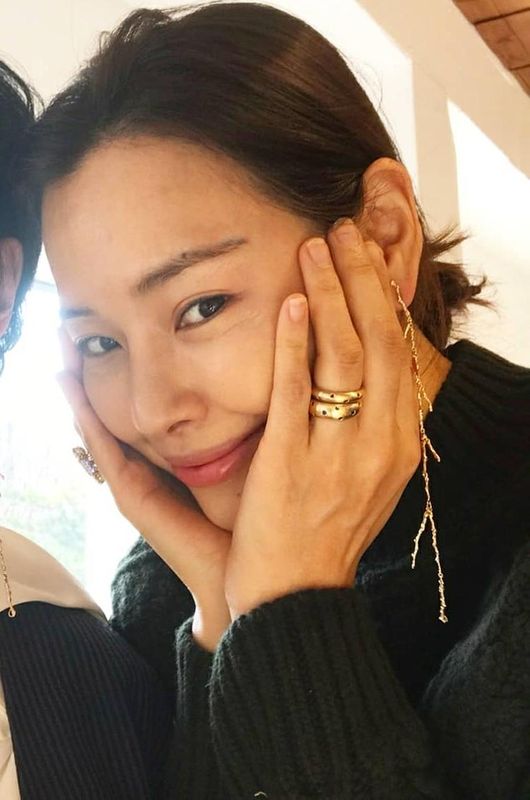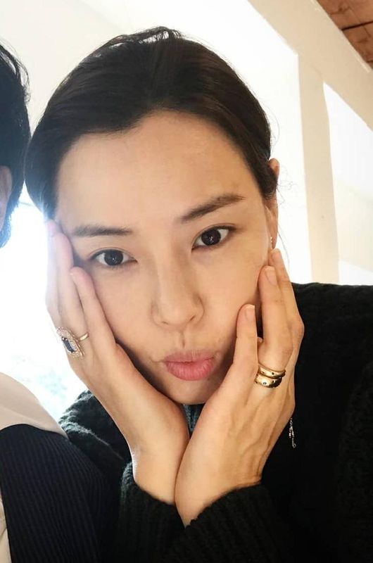 공개된 사진 속 이하늬는 지인과 함께 셀카를 찍고 있다. 이하늬는 화려한 반지를 착용한 양손으로 얼굴을 감싸쥔 모습이다.