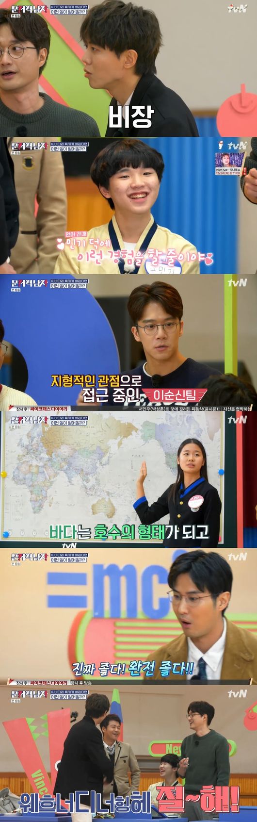 다음은 열혈 시청자가 낸 문제를 맞혀야했다. 기세를 몰아 구민기 학생이 도전, 깔끔한 풀이설명까지 더해 정답을 맞혔다. 언어 천재의 클래스까지 인증했다. 흐트럼 없이 집중한 구민기 학생의 활약이 돋보였다.