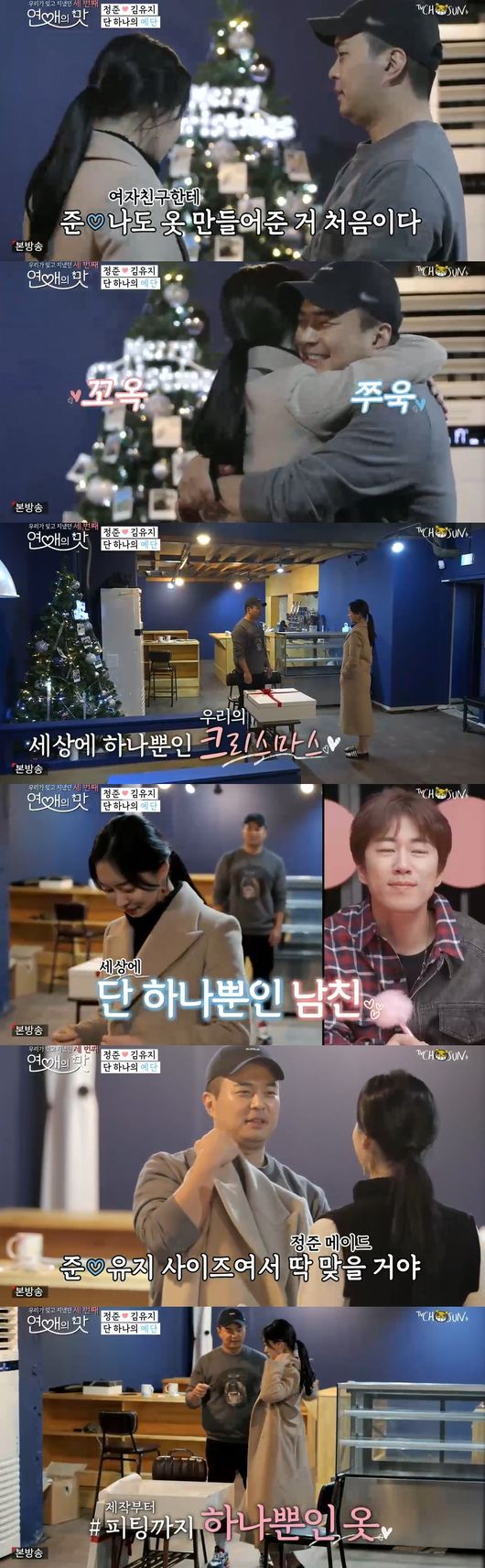 트리가 완성됐고, 정준이 유지를 위한 큰 선물상자를 들고 왔다. 상자 안에는 정준이 3주 동안 만든 코트가 들어있었다. 정준은 "세상에 하나 뿐인 것"이라면서 선물했고, 유지는 감동했다. 정준은 "여자친구한테 만들어준 건 처음"이라고 했고, 이를 본 패널들은 "클래스 인정, 참 멋진 사람"이라며 놀라워했다.