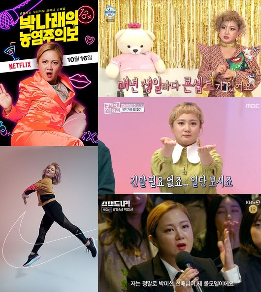 지난해에 이어 올해도 안방극장을 종횡무진 달린 것도 모자라 자신의 이름을 달고 글로벌 동영상 스트리밍 서비스(OTT) 넷플릭스에 진출해 날개 단 예능감을 보여줬다. ‘대세 오브 대세’ 박나래의 2019년 한 해 동안의 활약을 5가지 키워드로 짚어봤다.