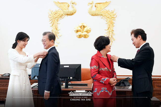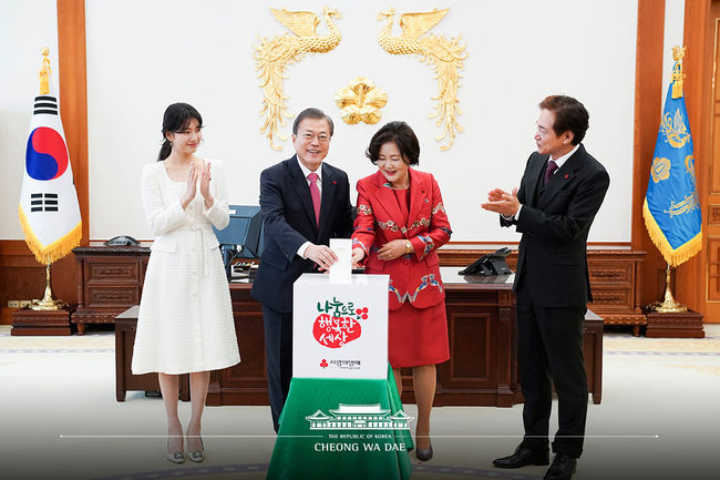 이와 관련해 청와대 측 역시 행사를 마친 후 SNS를 통해 서면브리핑과 행사 사진들을 공개했다. 사진 속에선 문재인 대통령과 김정숙 여사가 수지, 정보석과 함께 환한 미소를 짓고 있다.