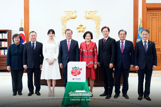 20일 청와대에서는 '사랑의 열매' 전달식이 진행됐다. 이날 전달식에서는 수지와 정보석이 함께 참석했다.