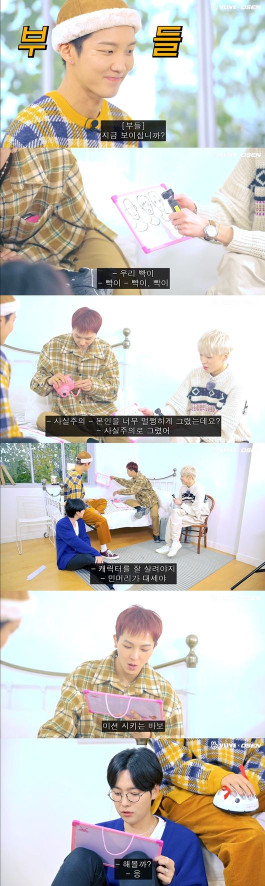 이때 송민호가 멤버들의 얼굴을 다 그려 눈길을 사로 잡았다. 특히 송민호는 이승훈을 빡빡이로 그려 웃음을 자아냈다. 이승훈은 "그림이 너무 사실주의다"라고 말했다.