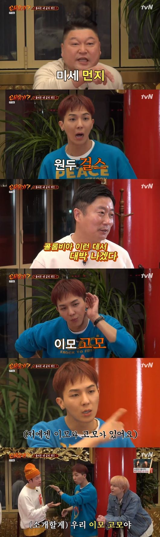 여섯 번째 음식은 해삼전복. 송민호는 이모라는 단어에 고모라고 답해 폭소케했다. 송민호는 "콘서트할 때 이모랑 고모랑 같이 오셨다. 멤버들에게 소개도 했다" 라고 말해 웃음을 자아냈다.