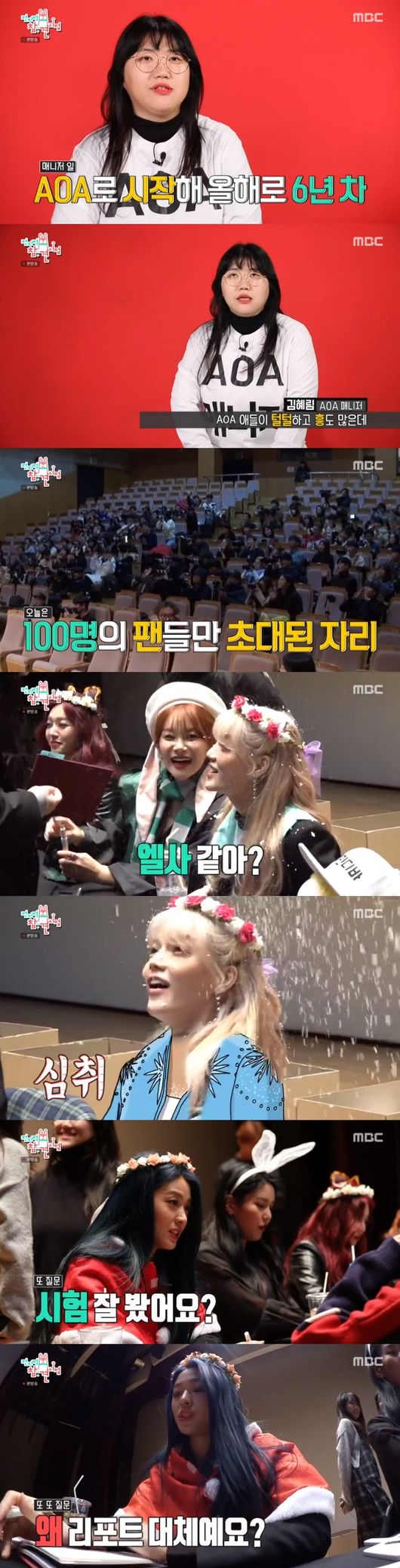 이어 AOA매니저 김혜림이 등장했다. 매니저는 "멤버들이 상당히 털털하다. 다들 걸그룹도 이렇게까지 털털한지 너무 궁금하다"며 제보를 한 이유를 밝혔다. 이어 AOA 멤버들이 무대를 마치고 나오면서 쉴 새 없이 이야기를 했다. 이 모습에 전현무는 "한명도 쉬지 않고 말을 해. 대단하다"고 말했다.