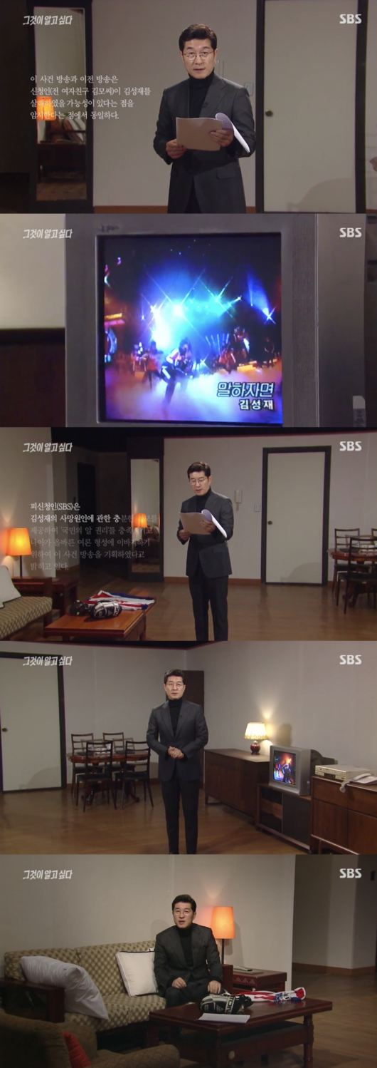 ‘그것이 알고 싶다’ 진행자 김상중은 “오늘 우리는 시청자 여러분들께 사과의 말씀을 드리며 방송을 시작해야 한다”며 “오늘 예정이됐던 방송은 고 김성재 사망사건 미스터리였다. 그런데 어제 오후 법원의 결정으로 인해 방송을 전하지 못하게 돼 진심으로 죄송하다”고 말했다.