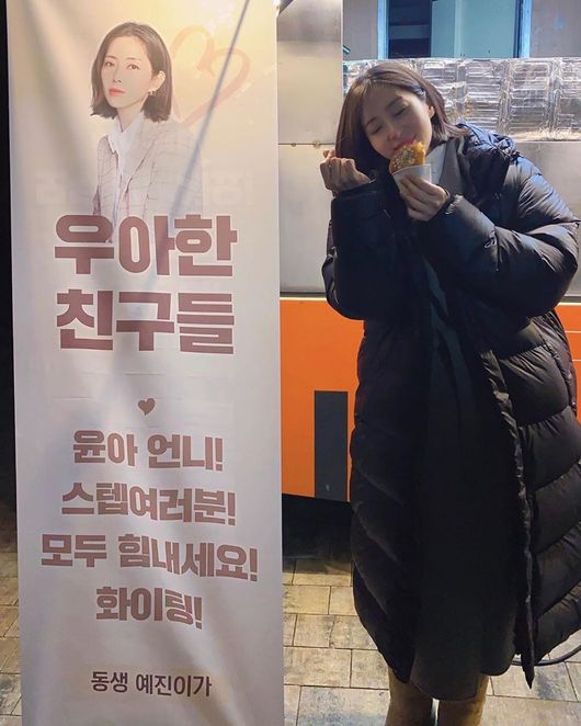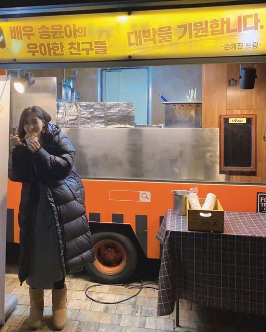 공개된 사진 속에는 송윤아가 절친한 후배 손예진에게 받은 간식차의 모습이 담겨 있다. 손예진은 송윤아의 새 드라마를 응원하기 위해서 간식차를 선물했고, '윤아 언니 스텝 여러분 모두 힘내세요! 동생 예진이가', '배우 송윤아의 우아한 친구들 대박을 기원합니다 -손예진 드림-'이라는 응원 문구를 덧붙였다.