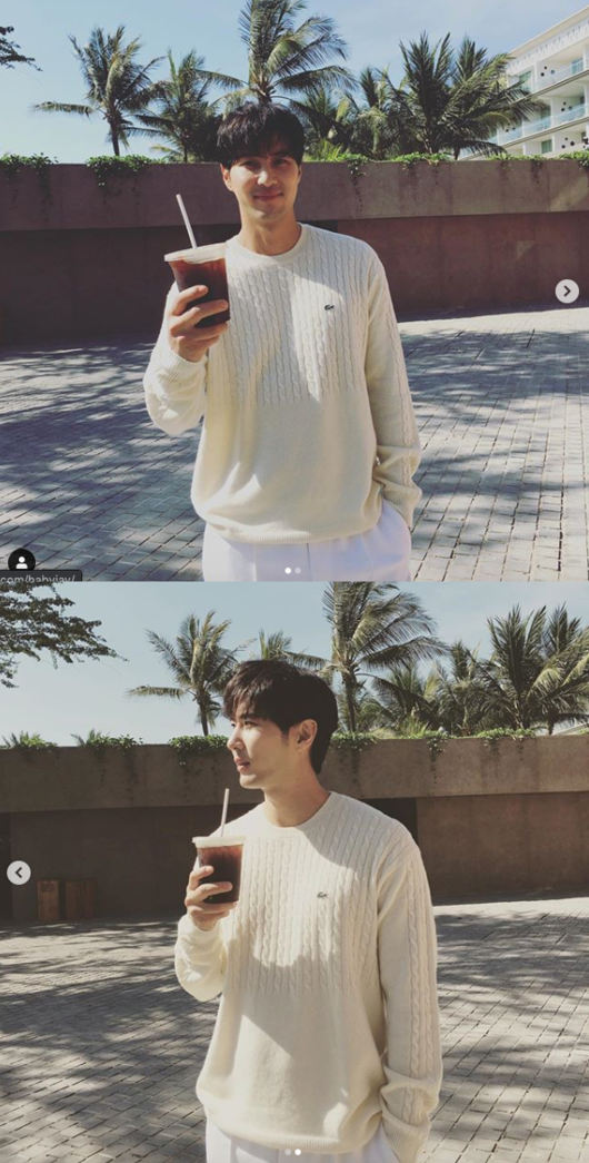 이는 발리에서 찍은 걸로 보인다. 김지석은 이국적인 풍경을 뒤로 하고 멋짐을 발산하고 있다. 온화한 미소와 다정한 눈빛은 보는 이들을 심쿵하게 만들기 충분하다.