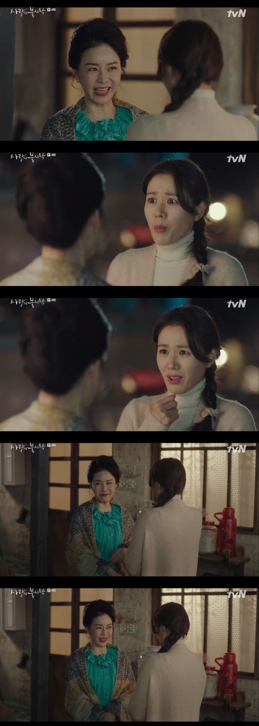 22일 오후 방송된 tvN '사랑의불시착' (극본 박지은, 연출 이정효)에 윤세리(손예진 분)가 리정혁(현빈 분)의 진급을 위해 대좌 동지의 아내 마영애(김정난 분)과 친해지기 시작했다.