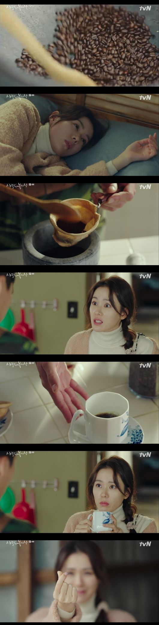 다음날 아침, 정혁은 세리를 위해서 시장에서 어렵게 구한 커피 콩을 볶기 시작했다. 세리는 눈을 뜨자마자 "커피냄새인데"라면서 반응했고, 정혁은 볶은 콩을 갈아서 커피를 내려줬다. "유학 시절 쓰던 거요"라는 말에 세리가 "아 유학 파였어요? 스위스? 뭐 전공했는데요"라고 물었고 정혁은 아무 말 없이 그냥 커피를 마셨다. 커피를 마신 손예진은 "이거 왜 이렇게 맛있어"라면서 놀라워 했고, "제가 받은 게 많아서 저도 드릴 게 있다"고 하며 출근하는 정혁에게 손가락 하트를 보냈다.