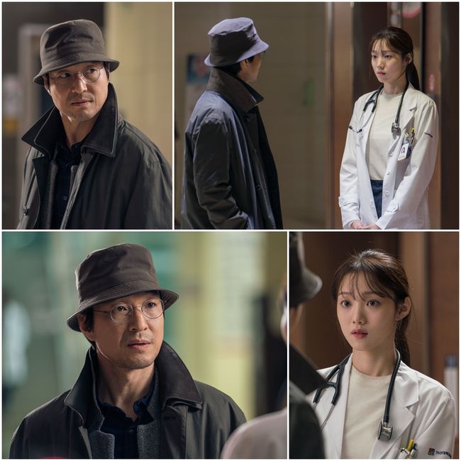 이와 관련 한석규와 이성경이 1대 1로 마주선 채 첫 대면하는 모습으로 긴장감을 고조시킨다. 극중 차은재(이성경)가 앞서 걸어가는 김사부(한석규)를 큰소리로 부르며 마주보는 장면. 김사부는 차은재 쪽으로 고개를 돌리고, 차은재는 모범생의 반짝거리는 눈빛으로 김사부에게 질문을 던진다. 하지만 이내 김사부가 서늘한 카리스마를 드러내며 무섭게 호통을 치자, 차은재는 눈동자가 마구 흔들린 채 당혹스러워한다. 전혀 다른 ‘극과 극’ 감정으로 첫 대면한 김사부와 차은재의 모습이 펼쳐지면서, 두 사람의 대면이 어떤 결과를 이끌어냈을 지 귀추가 주목되고 있다.