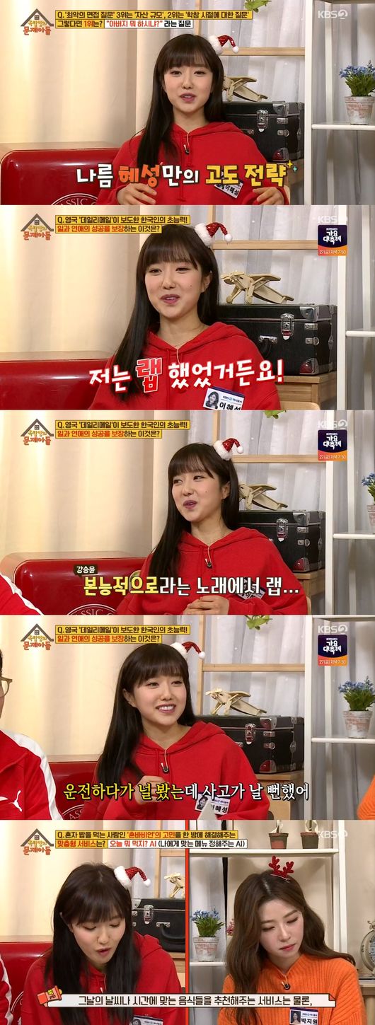 다음은 영국 데일리메일이 보도한 한국인의 초능력을 맞혀야 했다. 일과 연애의 성고을 보장하는 이것에 대해 김용만은 "열애할 때 초능력이 뭐 있어요?"라고 물었고, 이혜성은 "연애할 때, 진실된 마음"이라 수줍게 대답해 눈길을 끌었다. 정답은 눈치였고, 외국에는 없는 단어라고 해 눈길을 끌었다.