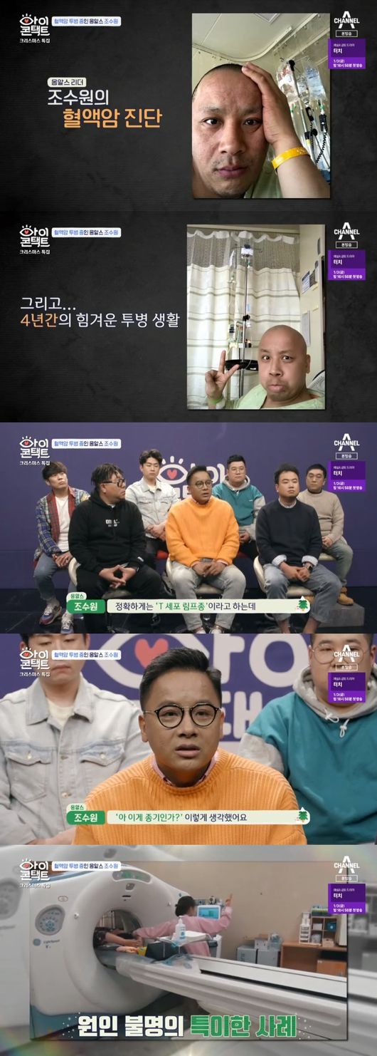23일 오후 방송된 채널A '아이콘택트'에는 김철민이 옹알스 조수원의 초대로 아이콘택트를 진행했다. 두 사람은 암 투명이라는 공통된 아픔을 갖고 있었다.