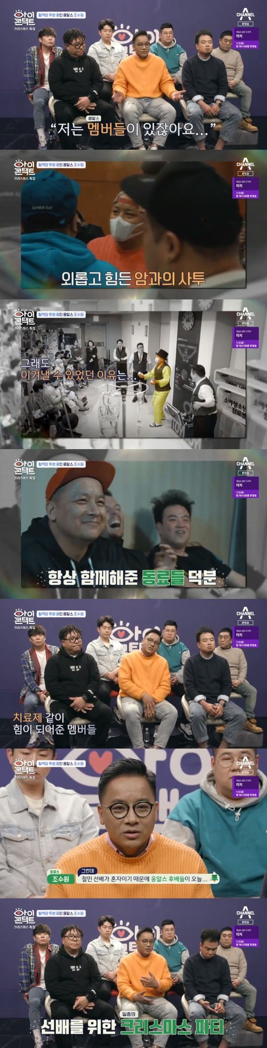 옹알스 리더 조수원의 요청으로 항암 치료중인 김철민과의 아이콘택트가 진행 됐다. 옹알스 리더 조수원은 혈액암으로 4년간의 투병을 이겨내고 주기적으로 조직검사를 맞는 처지에 있었다. "철민 선배가 혼자 있기 때문에 옹알스 저희들은 여러명이니까 크리스마스를 함께 하고 싶어서 찾아왔다"는말이 이어졌다.