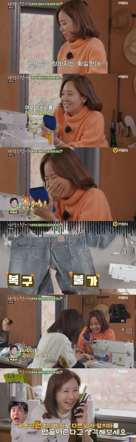 소유진은 "내가 청바지 사주겠다"고 울컥하면서 백종원에게 전화를 걸었다. 이어 백종원의 청바지로 앞치마 만들었다고 하자 백종원은 " 설마 내 청바지 잘랐어? 비싼거냐"며 당황, 소유진은 "나 사랑하냐"며 말을 돌렸다.