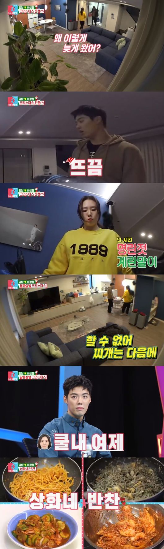 이상화는 집에 도착한 강남이 들고 온 짐을 하나씩 뒤지기 시작했다. 강남은 정작 이상화가 사오라는 재료는 사오지 않고 전부 시키지 않은 다른 것만 사왔다. 이에 이상화는 "어쩔 수 없다. 찌개는 다음에 먹으라"라고 시원하게 이야기했다.