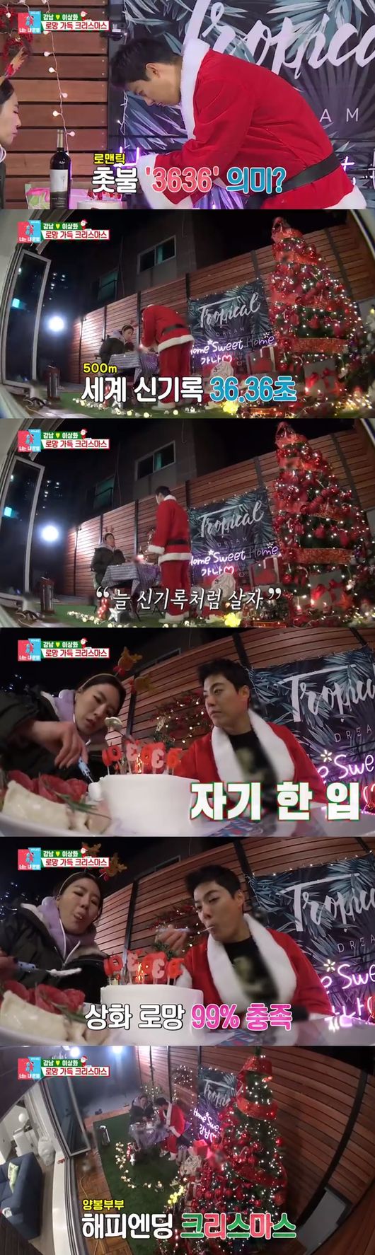 이날 강남과 이상화는 테라스에서 크리스마스 트리 꾸미기에 나섰다. 강남은 제작진과의 인터뷰를 통해 "하와이에 살 때부터 많이 꾸몄다. 내가 하고 싶은 스타일의 크리스마스 트리를 보여주고 싶었다"라고 말했다.