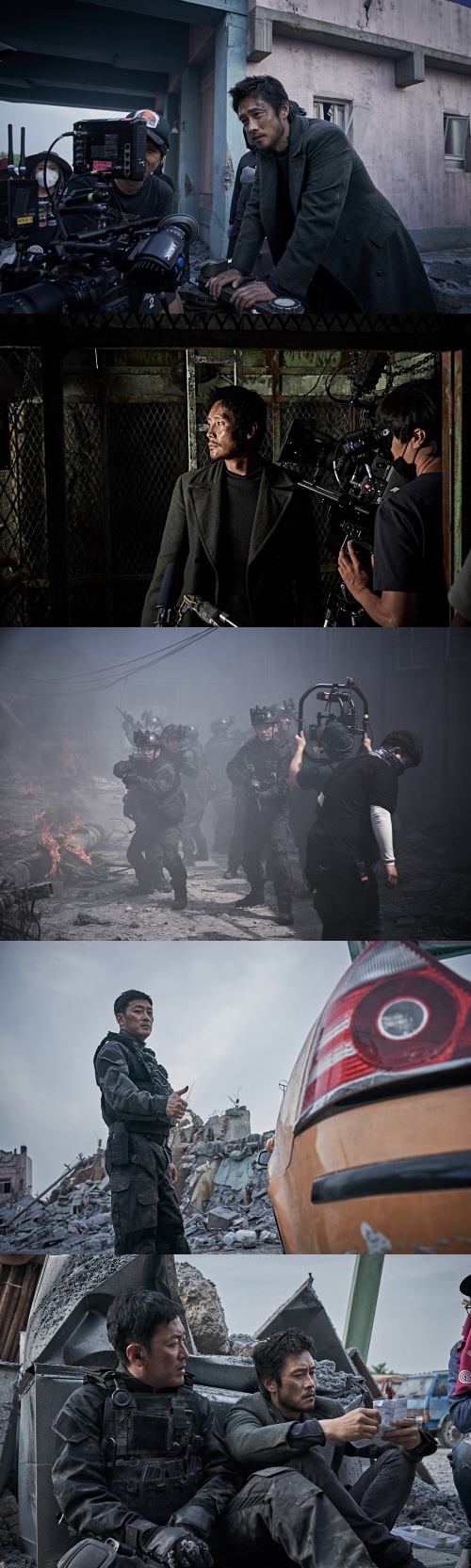 또한, 모두의 운명이 걸린 비밀 작전에 투입된 EOD 대위 조인창 역 하정우의 스틸은 진지함과 웃음을 오고가는 매력으로 조인창과의 높은 싱크로율을 보여줘 이목을 집중시킨다. 여기에 이병헌과 하정우가 촬영 전 함께 연기를 고민하는 모습부터 대화를 나누며 환한 미소를 짓는 모습은 촬영 현장에서부터 이어진 이들의 완벽한 케미를 보여준다.