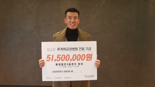 24일 승일희망재단에 따르면 션은 최근 통영 철인3종경기 완주 기념으로 5150만 원을 기부했다.