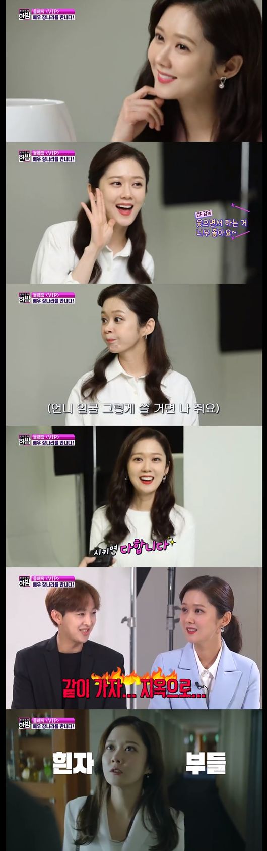 최근 장나라는 드라마 VIP로 큰 인기를 모으고 있는 상황. 장나라는 "더 잘됐으면 좋겠다"라며 "이번 드라마를 보면서 내 눈에 그렇게 흰자가 많은지 처음 알았다"라고 말했다.