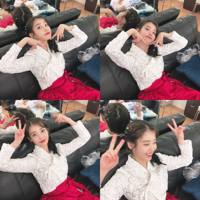 사진 속 아이유는 꽃받침을 하거나 양손으로 브이 포즈를 취하고 있다. 어린 아이처럼 순박한 미소가 인상적이다. 특히 아이유는 플라워 패턴의 상의와 강렬한 레드 컬러가 돋보이는 치마를 매치해 아름다움을 극대화시켰다.
