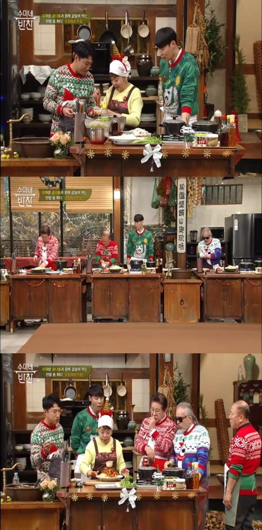 오늘(25일) 오후 8시 10분 방송되는 tvN '수미네 반찬'(연출 문태주) 82회에서는 크리스마스와 연말 홈 파티를 위한 간단하고도 풍성한 파티 요리 전수를 끝으로 졸업을 맞이하는 2기 제자 임현식, 김용건, 전인권의 마지막 이야기가 공개된다.