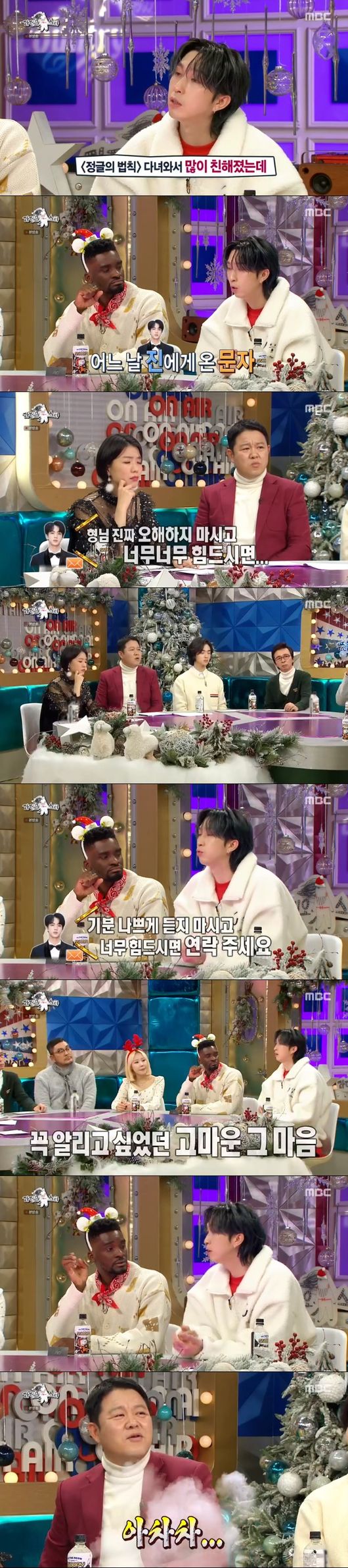 25일 오후 방송된 MBC '라디오스타'에는 전 소속사와 분쟁중인 슬리피가 출연해서 입담을 뽐냈다.