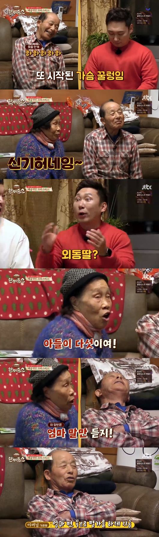 이에 강호동은 "할아버지가 한 번 얘기해주시지 그랬냐"라고 물었다. 이에 할아버지는 아무 말도 못했다. 할머니는 "할아버지는 엄마편이었다. 잠도 엄마 방에서 잤다. 아직도 그 마음이 풀리지 않는다"라고 말했다.