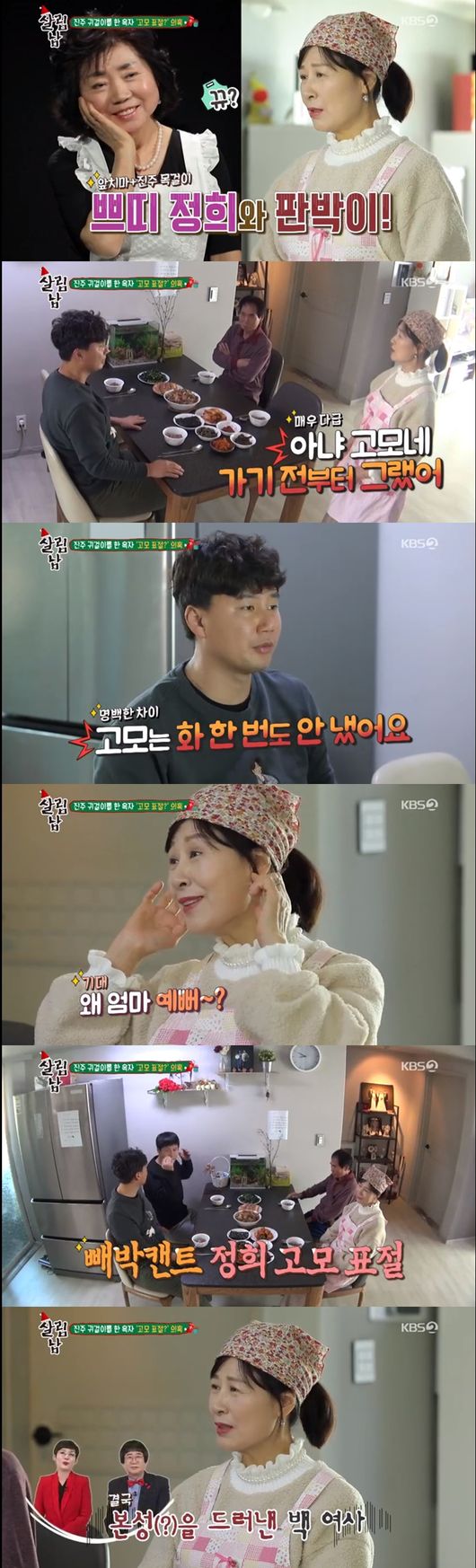 하지만 이 모습을 보던 김승현의 어머니는 분노가 폭발했다. 김승현의 어머니는 "일은 내가 다 했는데"라고 말했다. 홍경민은 "어머니도 옆에 와서 같이 드시는 게 어떠냐"라고 물었다. 이에 김승현의 아버지는 "우리 옥자씨는 족발을 별로 안 좋아한다"라고 말해 보는 이들을 기가 막히게 만들었다.