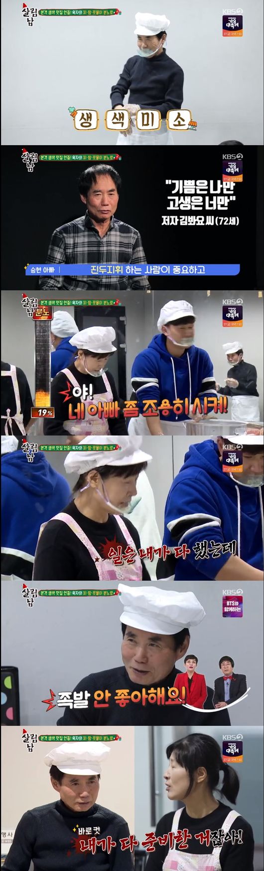 25일 방송된 KBS2TV '살림하는 남자들2'에서는 김승현의 가족이 연예대상 공연을 앞둔 김승현을 위해 간식을 준비하는 모습이 그려졌다.