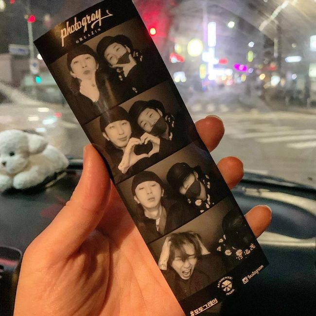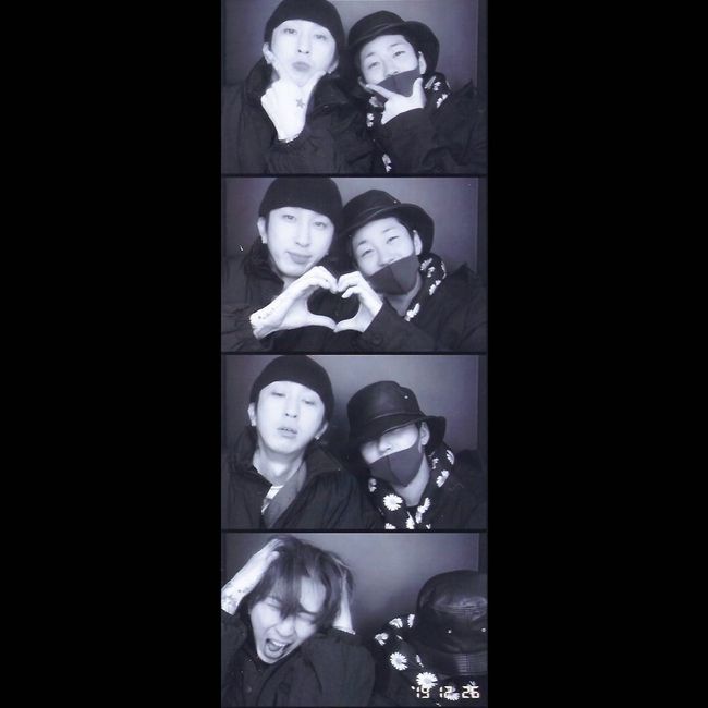 사진 속 슬리피와 딘딘은 서로의 손가락으로 하트를 만들거나 머리를 감싸는 등 유쾌한 포즈를 취하고 있다. 특히 흑백 사진임에도 불구하고 두 사람의 익살스러운 표정이 눈길을 끈다.