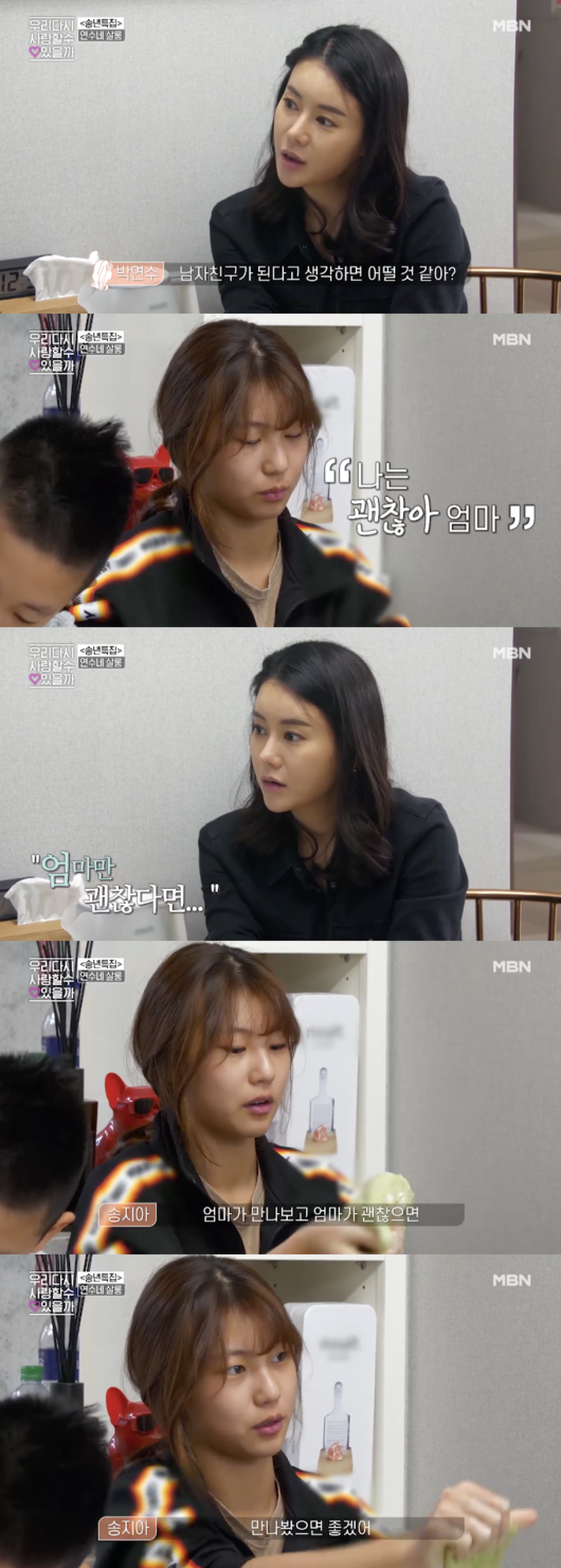 그러면서 “앞으로 새로운 사랑을 시작하게 되더라도 너희를 배려해야 한다는 생각이 들었다”고 했고 지아는 “우리 의견을 따라줬으면 좋겠다”고 전했다. 이에 박연수는 “당연하다. 엄마는 너희 때문에 산다”고 했다.