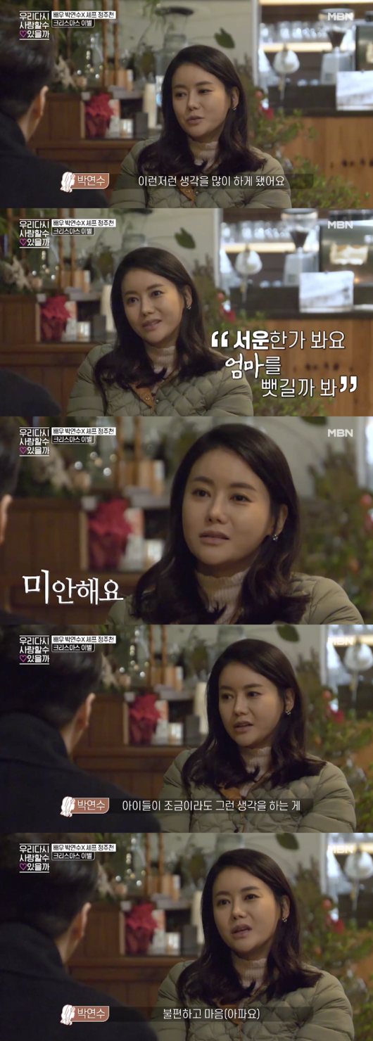 이후 박연수는 정주천을 만나 “나는 아이들이 나를 항상 응원한다고 생각했지만 아직은 엄마를 뺏긴 듯한 기분이 드는 것 같다. 지아, 지욱을 내가 혼자 키우고 있는데 내가 또 다른 사랑을 찾아서 가면”이라며 말을 쉽게 이어가지 못했다.