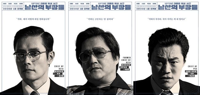 '남산의 부장들'은 1979년, 제2의 권력자라 불리던 중앙정보부장(이병헌)이 대한민국 대통령 암살사건을 벌이기 전 40일 간의 이야기를 그린 영화. 영화 속 부장들의 권력 암투를 예고하는 캐릭터 포스터 3종이 공개됐다.