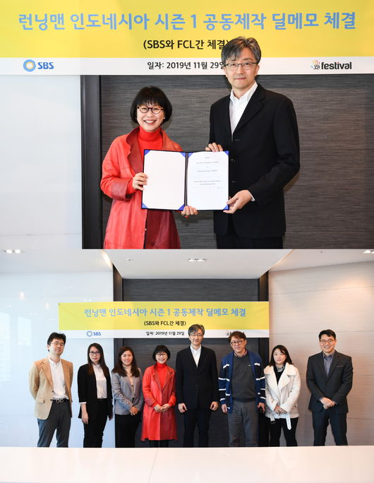 SBS는 지난달 29일 서울 목동 SBS 사옥에서 인도네시아 사업자인 FCL과 ‘런닝맨’ 인도네시아 시즌1 공동제작 딜메모 체결식을 가졌다. FCL은 인도네시아 재계4위 대기업인 시나르마스 그룹의 투자회사로 OTT사업을 비롯하여 콘텐츠제작/유통사업을 추진중이다. ‘인도네시아 런닝맨’ 시즌1은 2020년 중순에 인도네시아 지상파/OTT 방영을 목표로 제작할 계획이다.