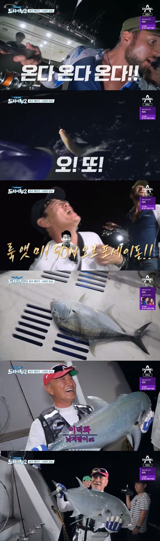 '도시어부2'에 이덕화가 자이언트 트레발리 낚시에 성공했다.