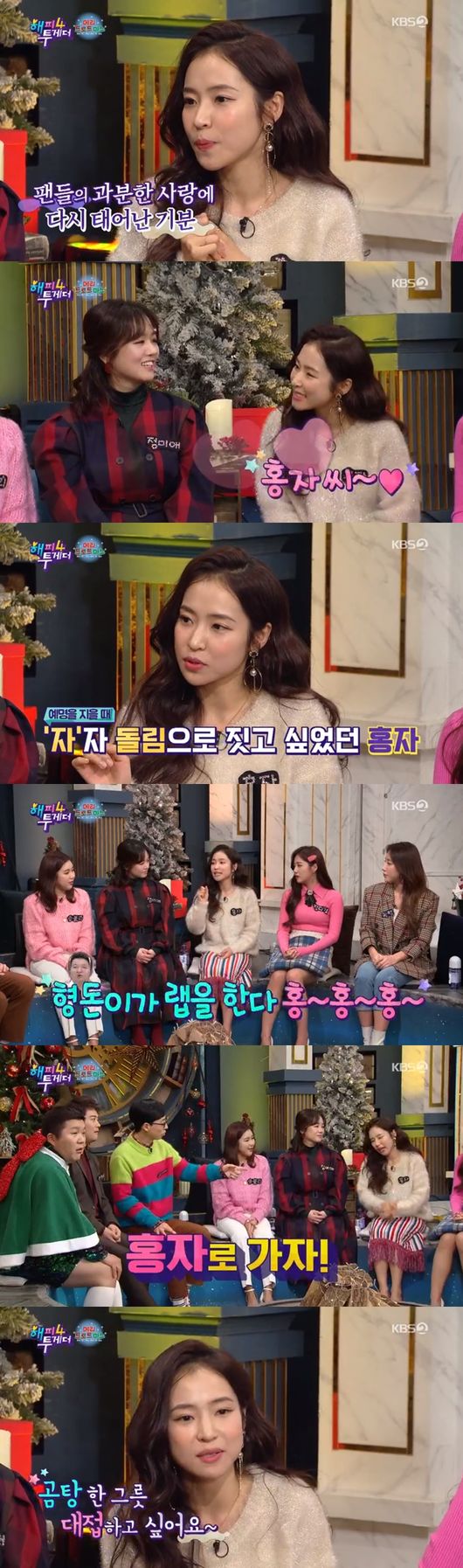 26일에 방송된 KBS2TV '해피투게더4'에서는 홍자의 이름이 만들어진 배경을 설명했다.