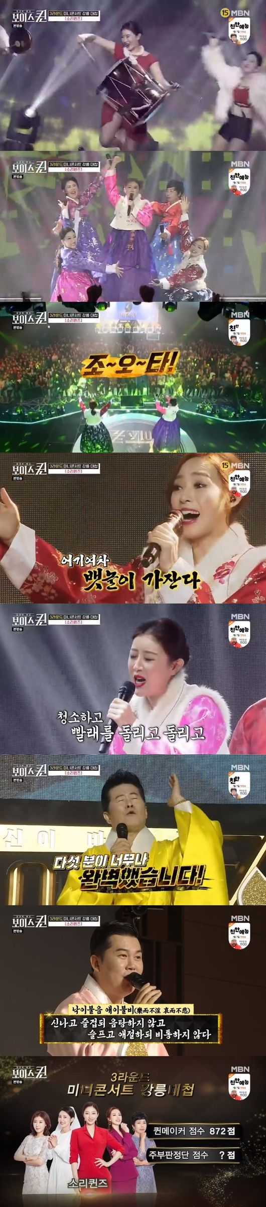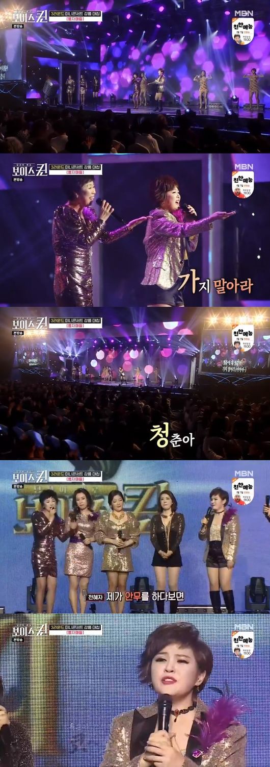 26일 방송된 MBN 예능 '보이스퀸'에서는 소리퀸즈가 3라운드 최종 우승을 하는 모습이 그려졌다.