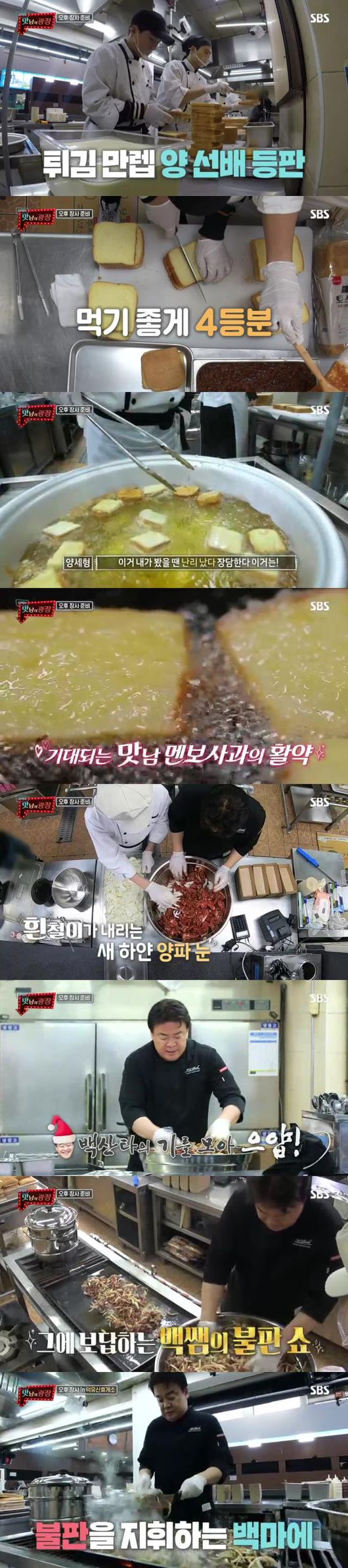 백종원은 장기 보관이 가능한 사과조림을 활용해 ‘멘보 사과’를 선보였다. 조리법이 간단함은 물론 맛 또한 훌륭했다. 양세형은 “겉은 바삭하고 안은 촉촉하면서 사과가 아삭아삭 씹히는 게 아름다운 간식이다”라며 극찬했다.