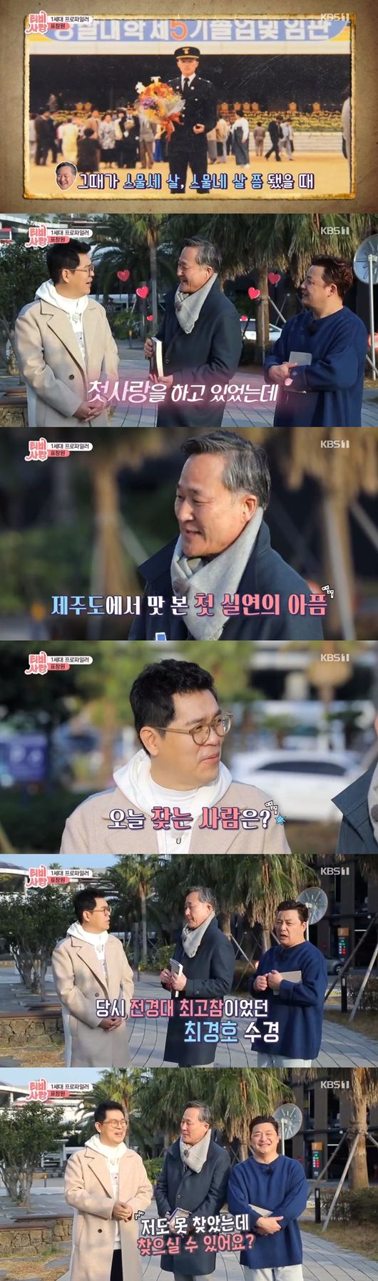표창원은 "첫사랑 여자친구가 선보기로 했다는 말을 하고 헤어졌다"라며 "내가 마음을 감추는 스타일이 아니다. 잘 드러난다. 다른 대원들한테 알리면 안되니까 최경호 수경과 함께 초소 인근에 있는 작은 구멍가게 가서 속마음을 털어놓고 이야기도 하고 그랬다"라고 말했다.