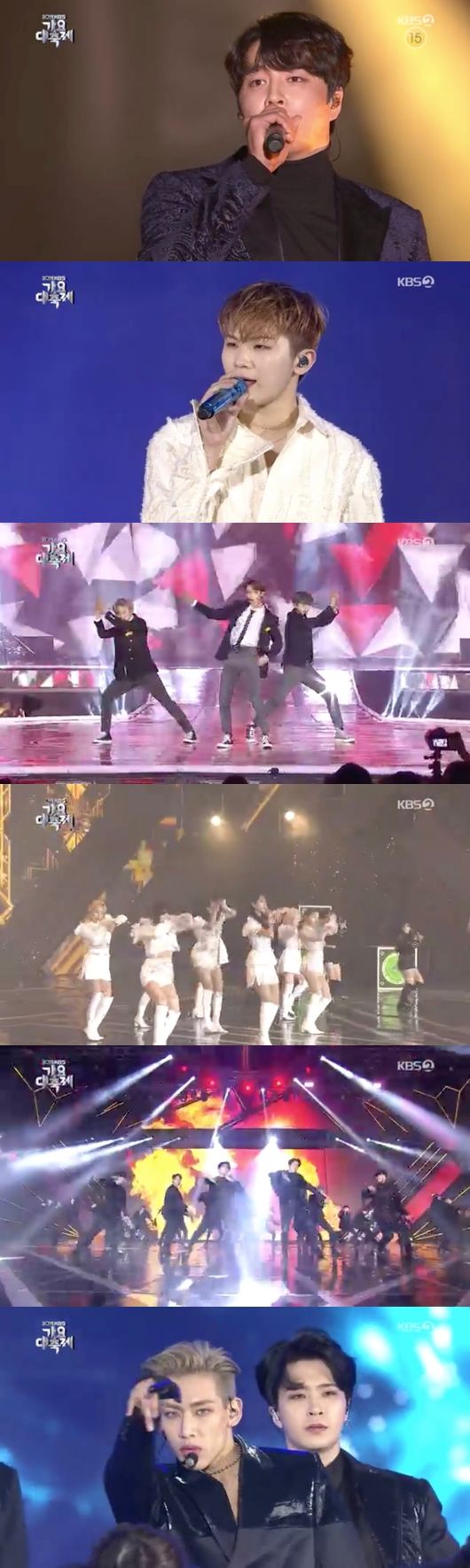 '2019 KBS 가요대축제'에는 방탄소년단, 송가인, 갓세븐, 있지, 몬스타엑스, NCT 127, NCT DREAM, 스트레이 키즈, 더보이즈, 투모로우바이투게더, 트와이스, 골든차일드, 뉴이스트, 레드벨벳, 마마무, 세븐틴, 아스트로, 에버글로우, 에이핑크, 엔플라잉, 여자친구, 오마이걸, 우주소녀, 청하 등이 출연했다. /notglasses@osen.co.kr