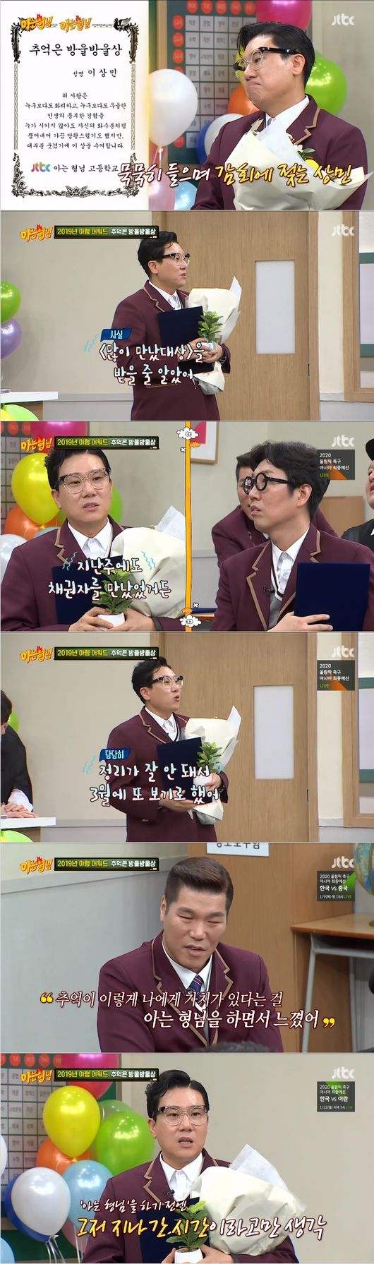 "추억은 방울방울상 후보"라는 장성규의말에 오나라가 "후보? 이상민이잖아"라고 했다. 상민은 "나는 사실 많이 만났대상인 줄 알았어. 지난주에도 채권자를 만났는데 잘 안됐거든 그건 그래서 3월에 다시 보기로 했고"라는 말에 "너무 슬퍼진다"면서 호동이 눈물을 훌쩍이는 척 했다."역시 연기 대상이야"라고 신동이 말을 보탰다. /anndana@osen.co.kr