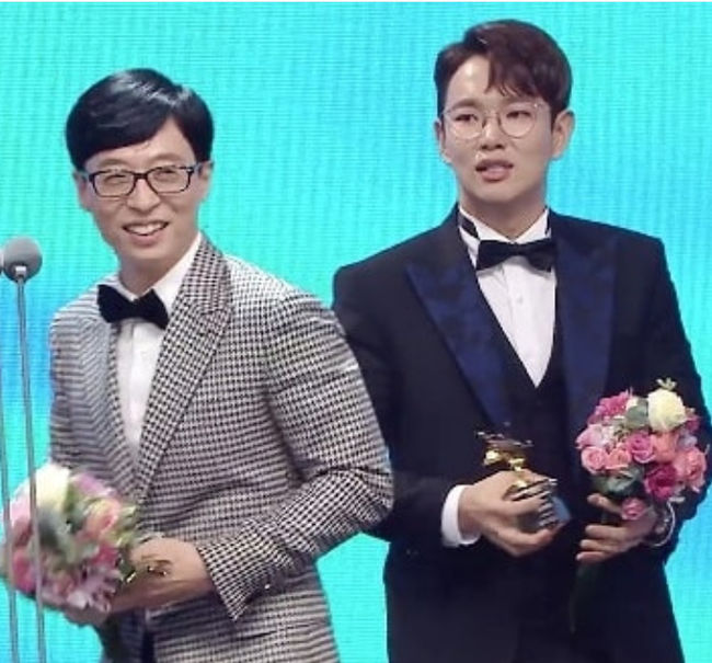 공개된 사진 속에서 장성규는 국민MC 유재석과 함께 나란히 상을받으며 벅찬 감동을 받은 듯 눈을 떼지 못 하고 있다.