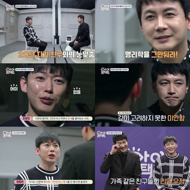 눈맞춤방에서 김승현은 마주 앉은 최창민을 보고 “명리학을 그만둬라”라고 단도직입적으로 말한 뒤 눈맞춤을 시작했다. 최창민은 굳은 표정으로 김승현의 눈길을 피했고, 김승현은 “지금 내 눈 피하는 거니?”라고 웃으며 물었다. 그러나 김승현은 곧 고개를 숙이고 눈물을 닦았고, 이에 3MC 강호동 이상민 하하는 “진짜 우정의 눈물”이라며 놀라워했다.