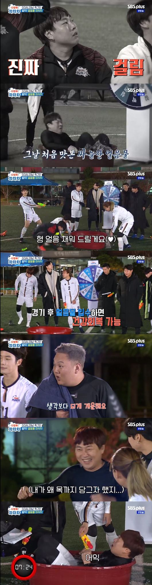 가나팀이 다시 골을 성공하면서 12대 16이 된 상황. 아쉬움을 남기고 경기가 종료 됐다. "가나팀 너무 잘햇다"면서 박수로 경기를 끝낸 가운데, 얼음물 입수가 진행 됐다. 쟈니가 얼음물에 들어 갈 사람의 이름을 정하기 위해 룰렛을 돌렸다. "쟈니가 돌려서 쟈니가 나오면 제일 좋은데"라는 말이 이어진 가운데, 박규선의 이름이 지목 됐다. "저는 경기도 안나갔는데"라는 말로 억울함을 토로하는 규선에게 수근이 "열심이 뛰었어야죠"라고 모른척 했다.