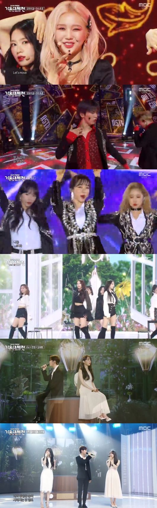 다음으로 시선을 사로 잡은 무대는 아스트로와 오마이걸이었다. 두 그룹은 아이유의 '분홍신'을 재해석해 잔혹동화와 뮤지컬을 연상케하는 무대를 선보이며 케미를 빛냈다.