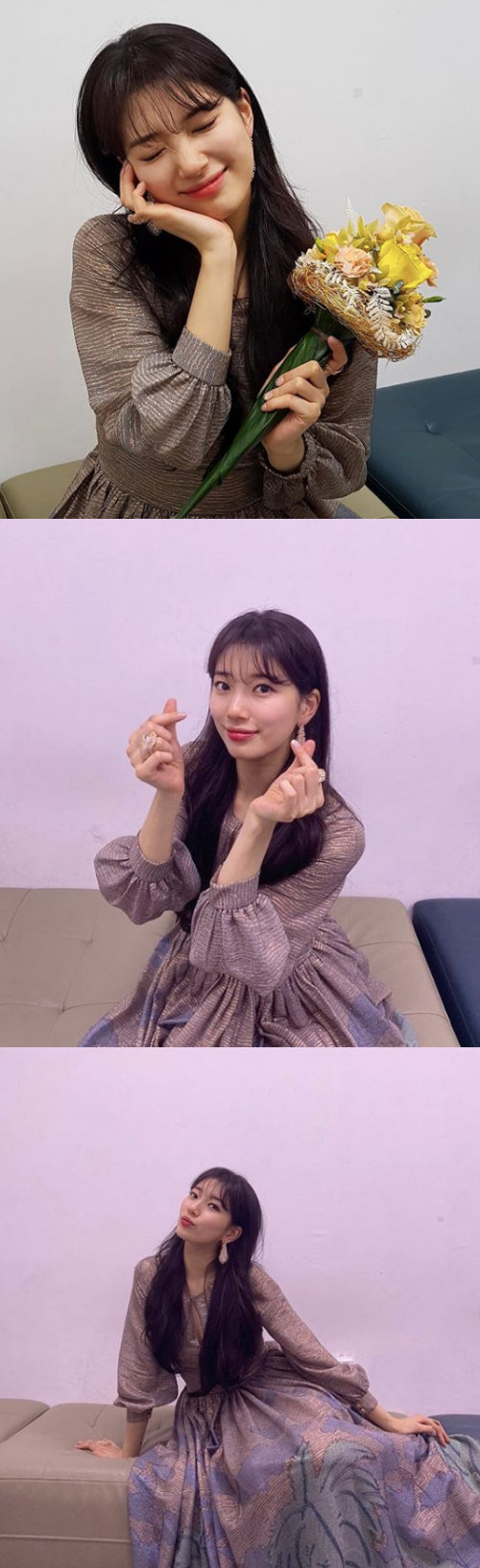 공개된 사진 속에는 2019년 마지막 날 진행된 'SBS 연기대상' 비하인드 컷이 담겨 있다. 총 3관왕을 차지한 수지는 무대 뒤에서 행복한 표정을 지으면서 기쁨을 누렸다.