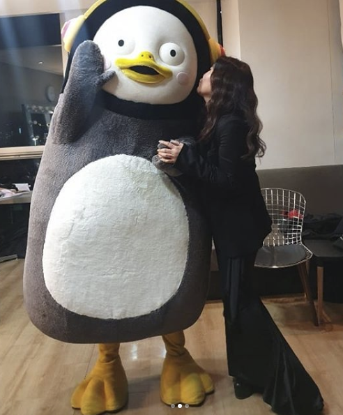 함께 올린 사진에서 한혜연은 시상식 현장에서 만난 펭수와 다정한 투샷을 완성했다. 다정하게 그에게 뽀뽀하거나 해맑게 ‘펭하’ 손인사를 하는 등 세상 행복한 모습이다 .