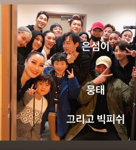 공개된 사진 속에는 뮤지컬 ‘빅피쉬’ 관람을 온 '은섬' 송중기와 '뭉태' 박진의 모습이 돋보인다. 더욱이 송중기는 김성철과 출연진을 위해 ‘빅피쉬’ 포스터를 활용해 만든 케이크까지 선물한 모습이다.